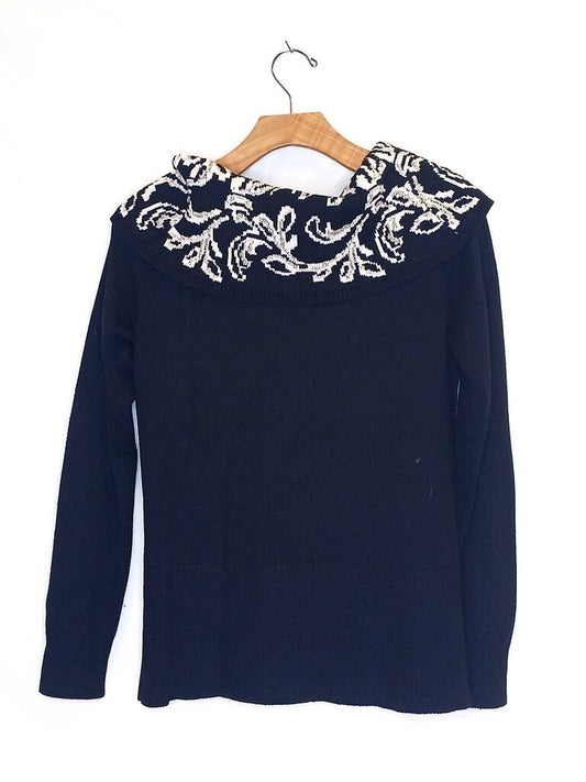 Trimmings Checkered Rose Crew Neck Sweater